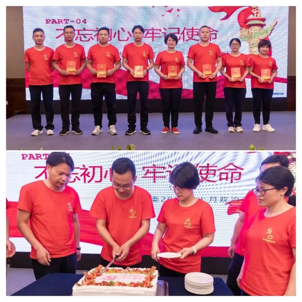 重温一次入党誓词,坚定理想信念。面对鲜红的党旗,集团党委书记袁建国作为领誓人,带领今年5位新发展的预备党员及所有党员一起高举右手,再次庄严宣誓:“我志愿加入中国共产党……随时准备为党和人民牺牲一切,永不叛党。”铿锵恢宏的誓词,强烈震撼着在场的每一位党员,一字一句,神圣而豪迈,体现了党员同志们对中国共产党的无限忠诚。