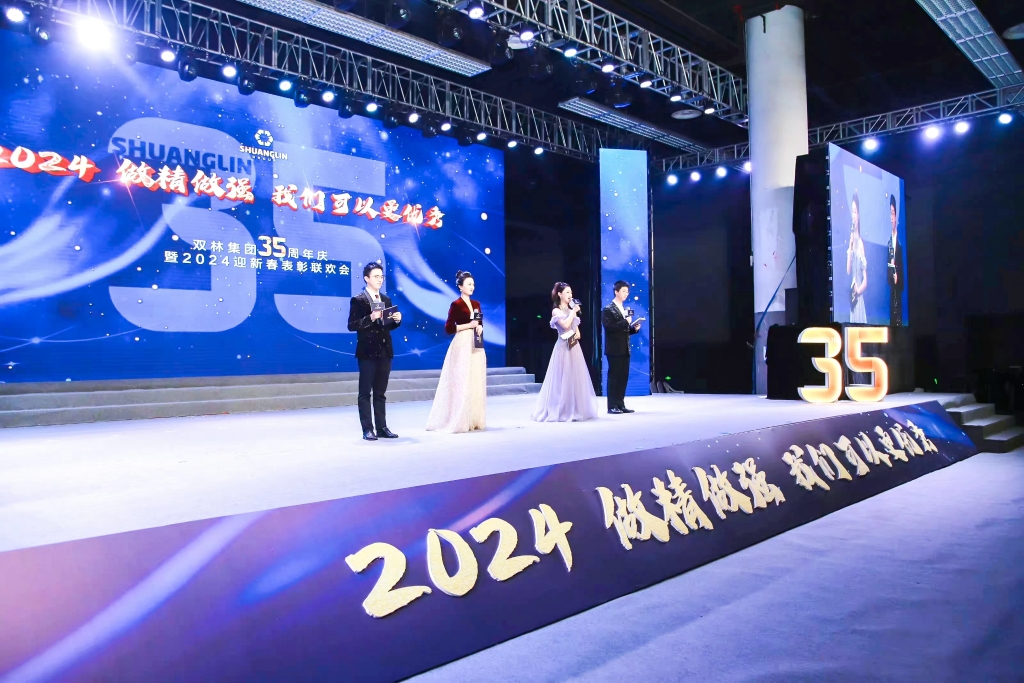 1月18日晚,“2024,做精做强,澳门广东会·(中国区)有限公司官网可以更优秀!” 双林集团35周年庆暨2024迎新春表彰联欢会在宁海国际会展中心举办。集团近两千位干部