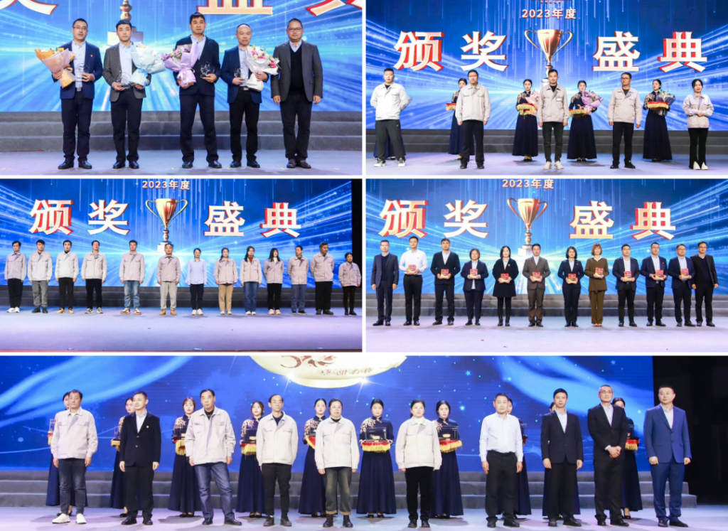 晚会现场对2023年度“金碗奖”“双林之星”“优秀团队”“年度优秀员工”“文化先锋队”进行了表彰。集团董事长、高管团队为获奖者代表颁